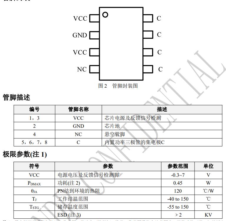 特點 ? 集成750V功率管 ? 恒壓控制,固定5V輸出電壓 ? 內置特有的峰值電流控制,無需CS電阻 ? 內置啟動電路,無需啟動電阻 ? 優異的動態性能 ? 優異的EMI特性 ? 優異的輸出負載調整率 ? 低待機功耗<75mW ? 全負載范圍內優異的音頻特性 ? 多重保護功能