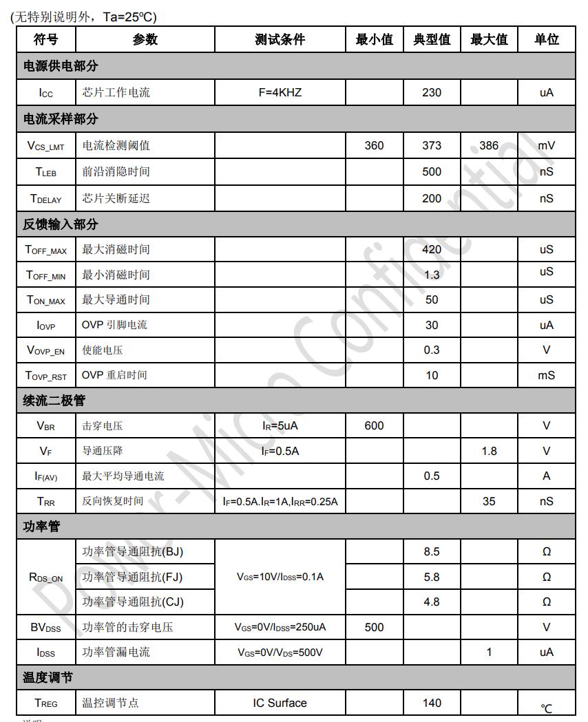 集成600V超快恢復(fù)二極管 無VCC電容、無啟動電阻 集成高壓供電功能 外置防潮O(jiān)VP功能
