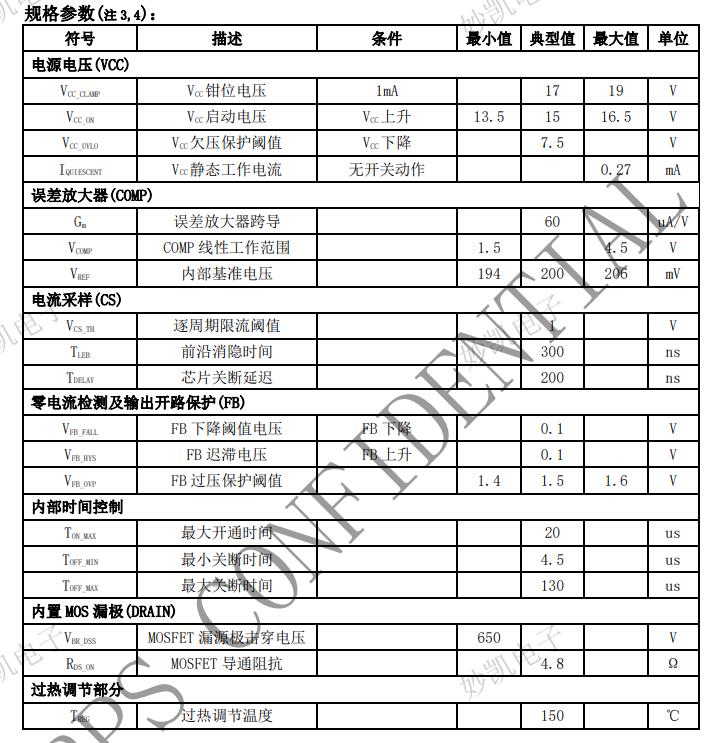 產品型號封裝MOS內阻MOS耐壓反激/升降壓內置保護輸出功率 @Vin:85V-265V(W)輸出功率 @Vin:176V-265V(W)