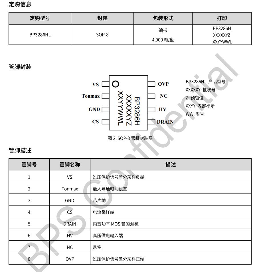 | BP3286HL | SOP8 | 0.9 | 4.7Ω | 650V | Buckboost/Flyback | Y | <10W | <12W |