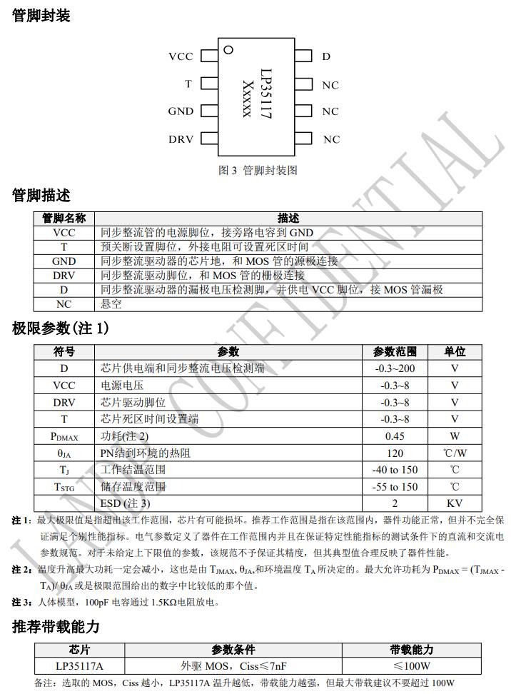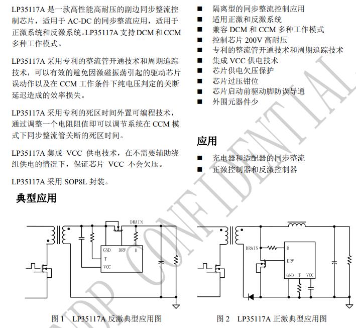 LP35117A 是一款高性能高耐壓的副邊同步整流控 制芯片,適用于 AC-DC 的同步整流應(yīng)用,適用于 正激系統(tǒng)和反激系統(tǒng)。LP35117A支持DCM和CCM 多種工作模式。