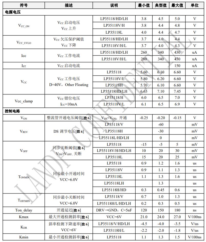 LP35118 采用專利的整流管開通判定技術,可以有 效的避免因激磁振蕩引起的驅動芯片誤開通。 LP35118 具有極快的關斷速度,可以大幅度降低在 CCM 工作條件下因關斷延遲造成的效率損失。
