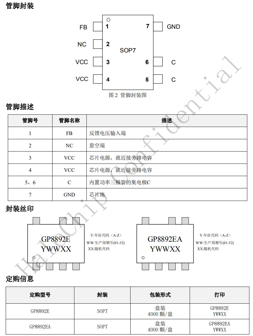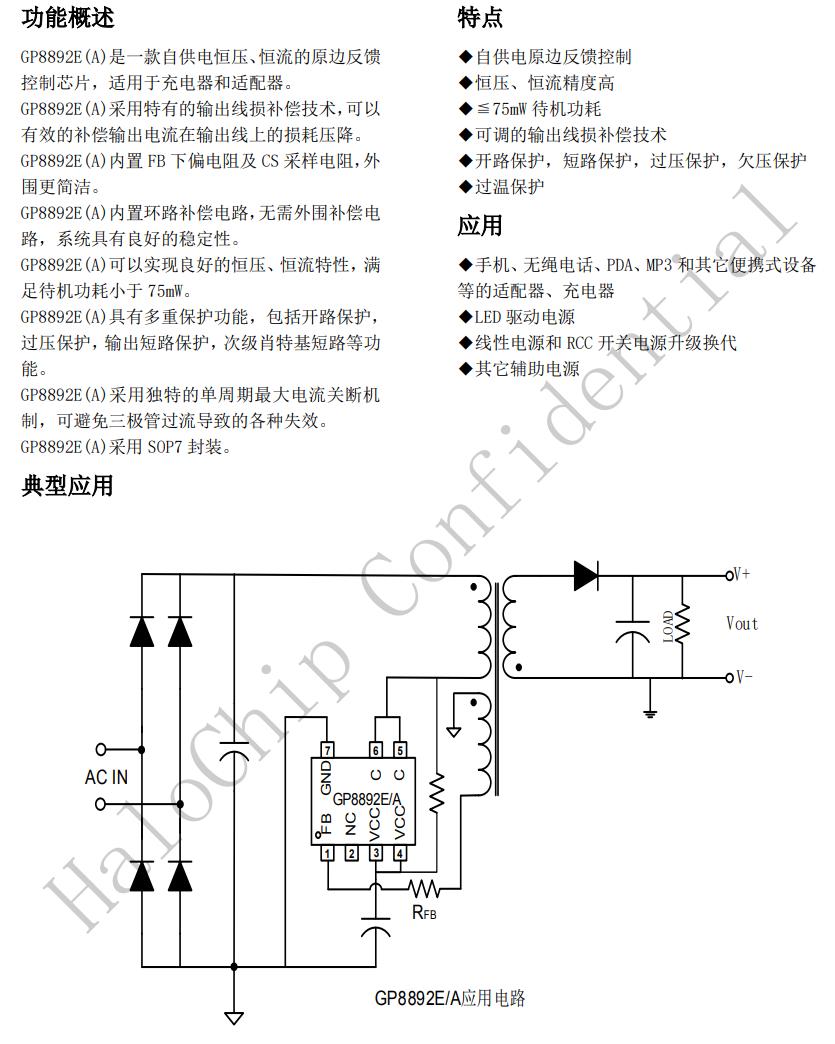 GP8892E(A)是一款自供電恒壓、恒流的原邊反饋控制芯片,適用于充電器和適配器。GP8892E(A)采用特有的輸出線損補償技術,可以有效的補償輸出電流在輸出線上的損耗壓降。