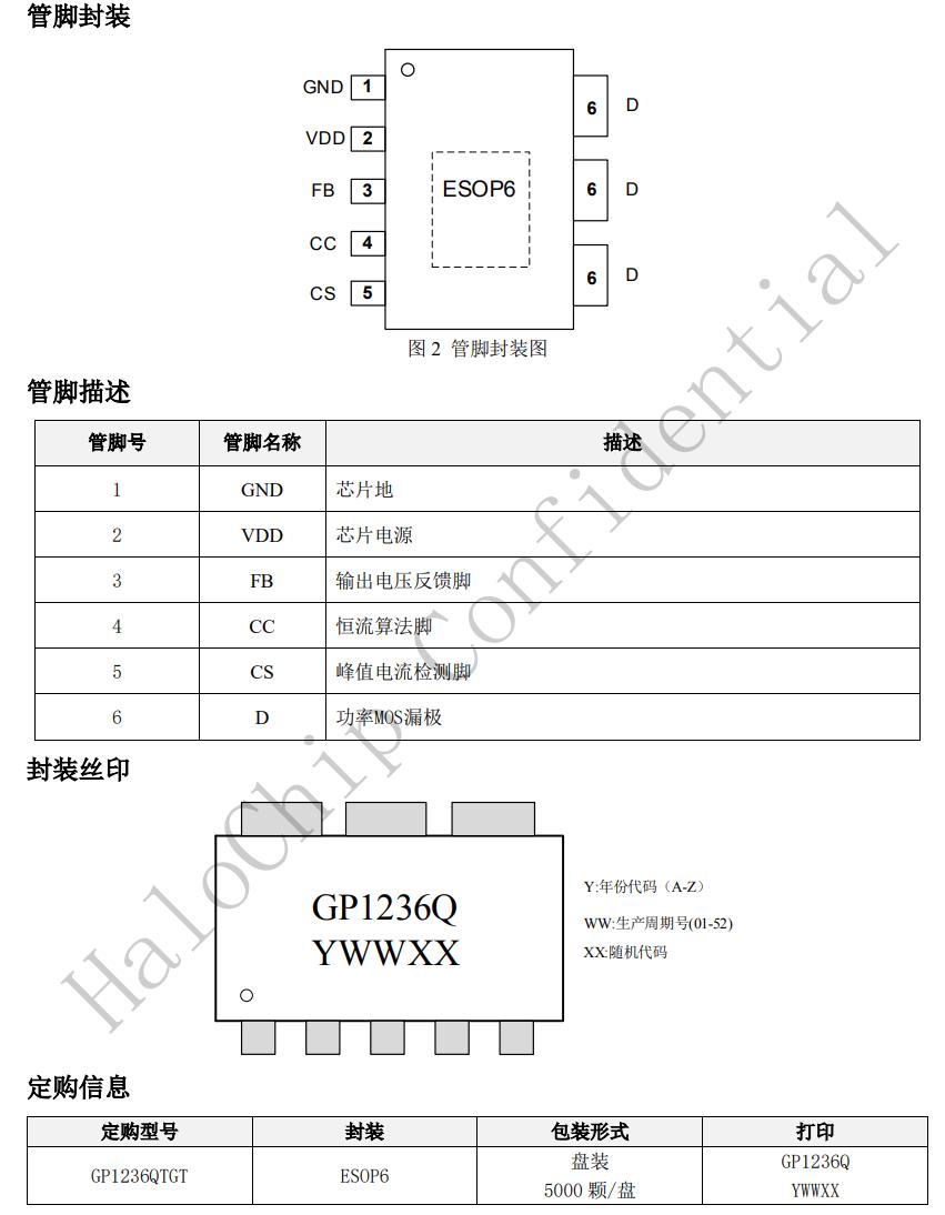 • 隔離型適配器和充電器的PSR內置MOSFET控制芯片,ESOP6封裝