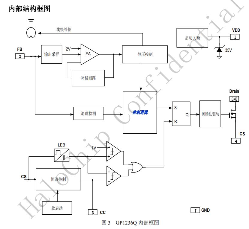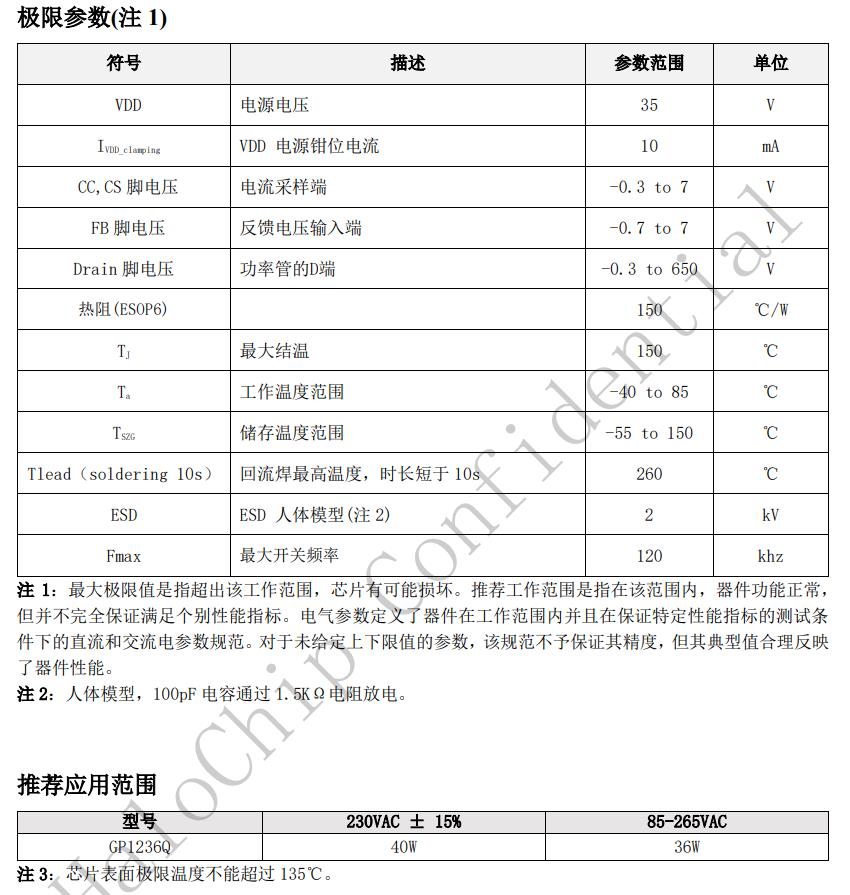 GP1236Q集成了輸出短路,過壓保護,逐周期過流保護,軟啟動,Vdd腳過壓欠壓保護及鉗位。