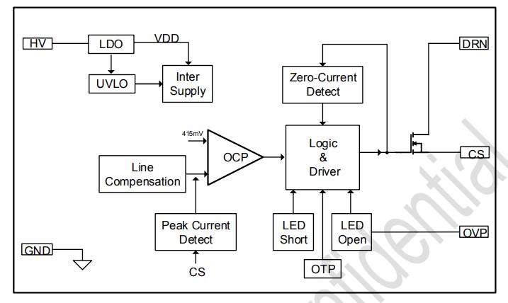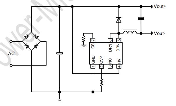 特點 ? 集成高壓啟動和供電 ? NO-CAP專利技術(shù) ? 兼容寬輸入電壓應(yīng)用 ? OVP電壓外部可調(diào) ? 電感電流臨界模式 ? LED開路保護(hù) ? LED短路保護(hù) ? 過溫調(diào)節(jié)技術(shù) ? 關(guān)機(jī)無回閃 ? 低輸入不閃燈